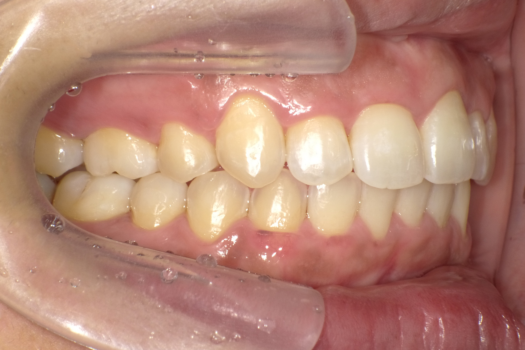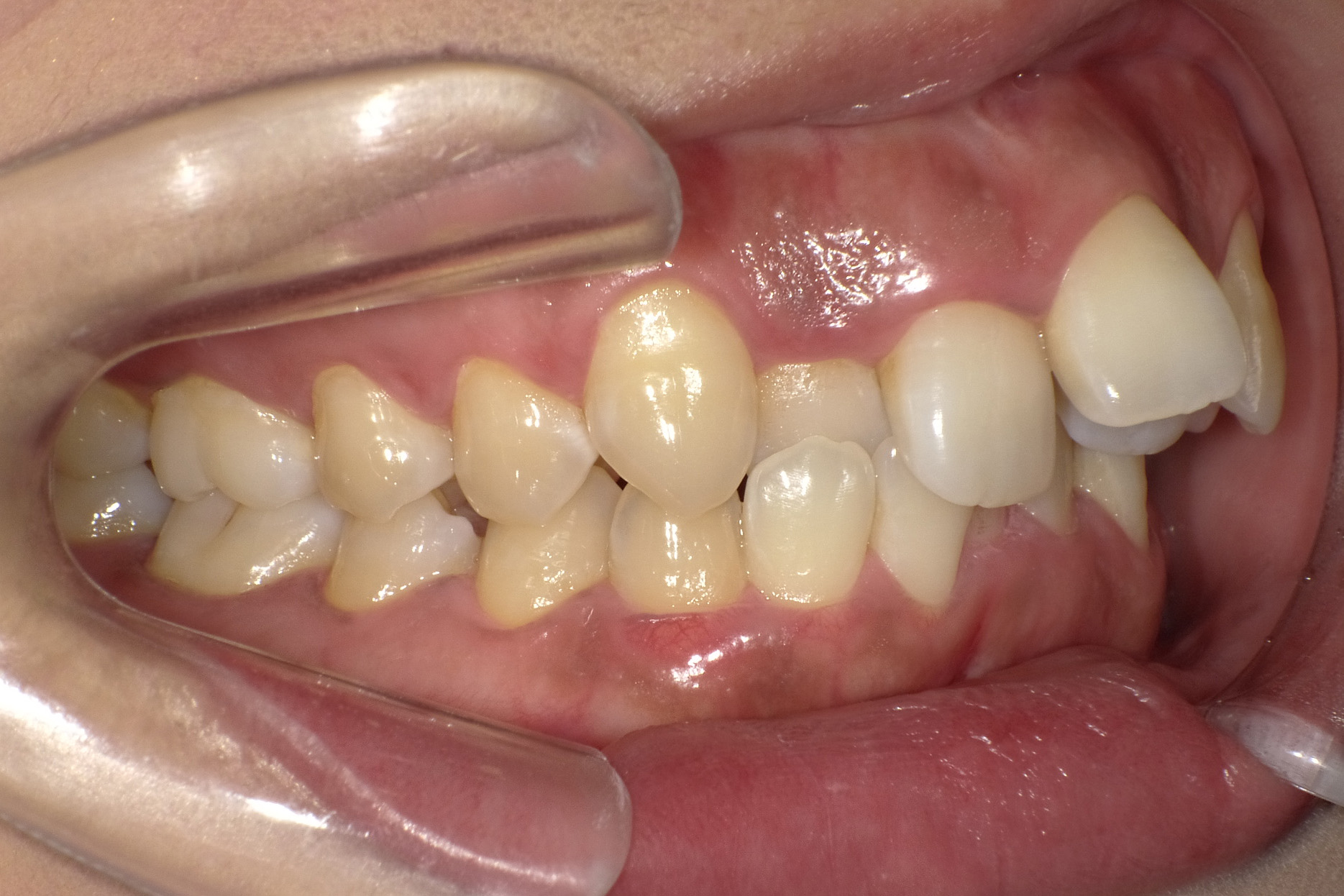 上の歯が完全に前にズレていたので、上の歯だけ抜歯しています。咬み合わせが深い歯ならびでしたが、ワイヤー矯正での治療だったので比較的キレイに整えられました。