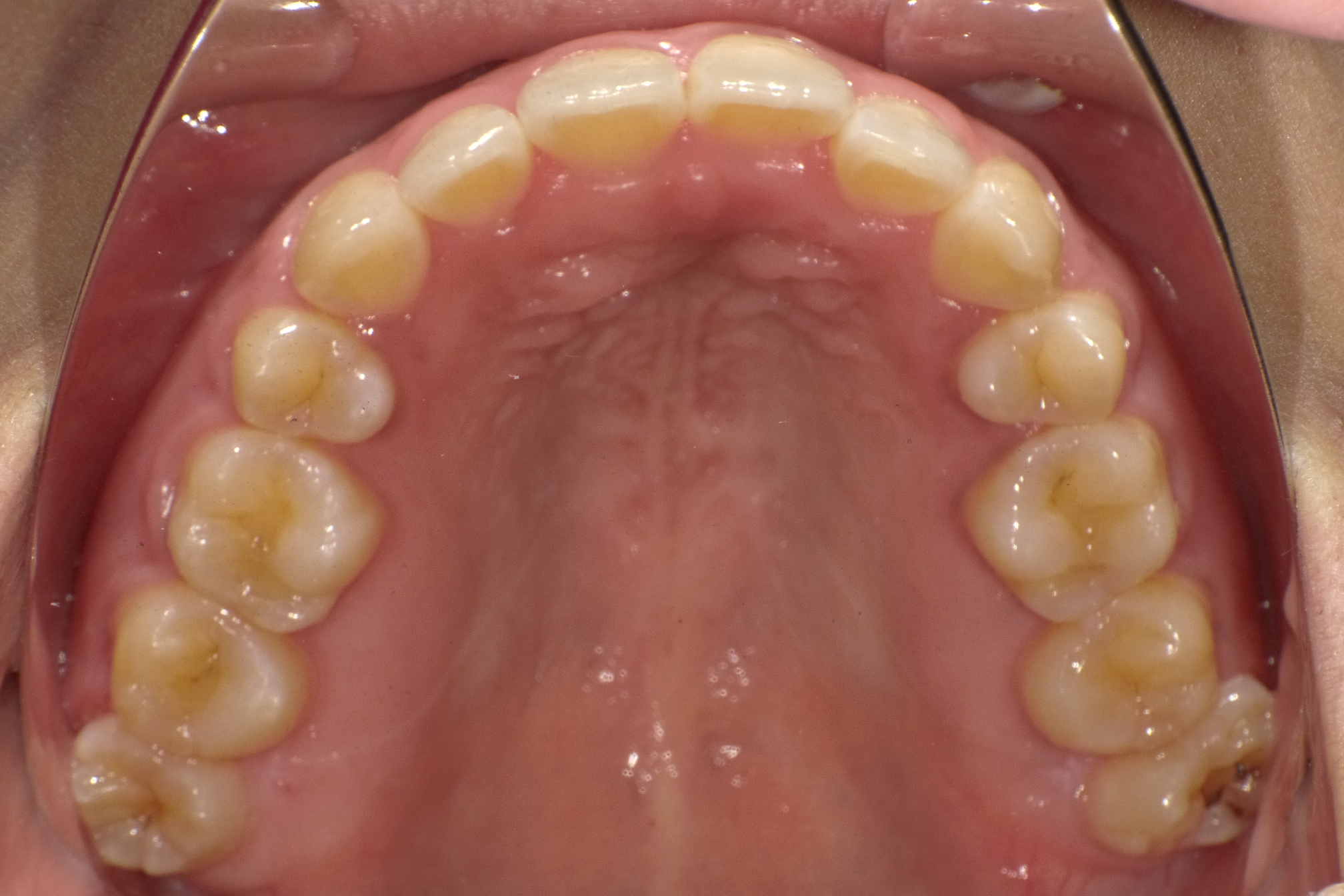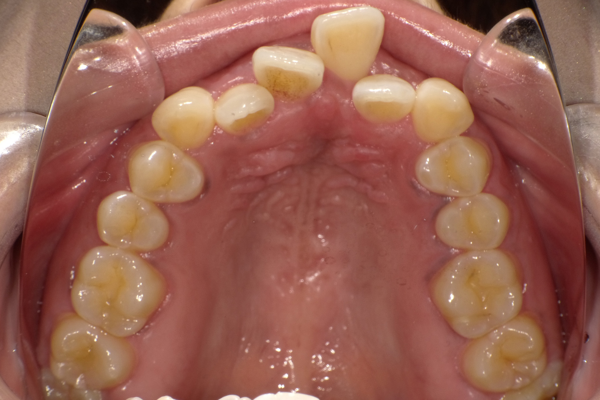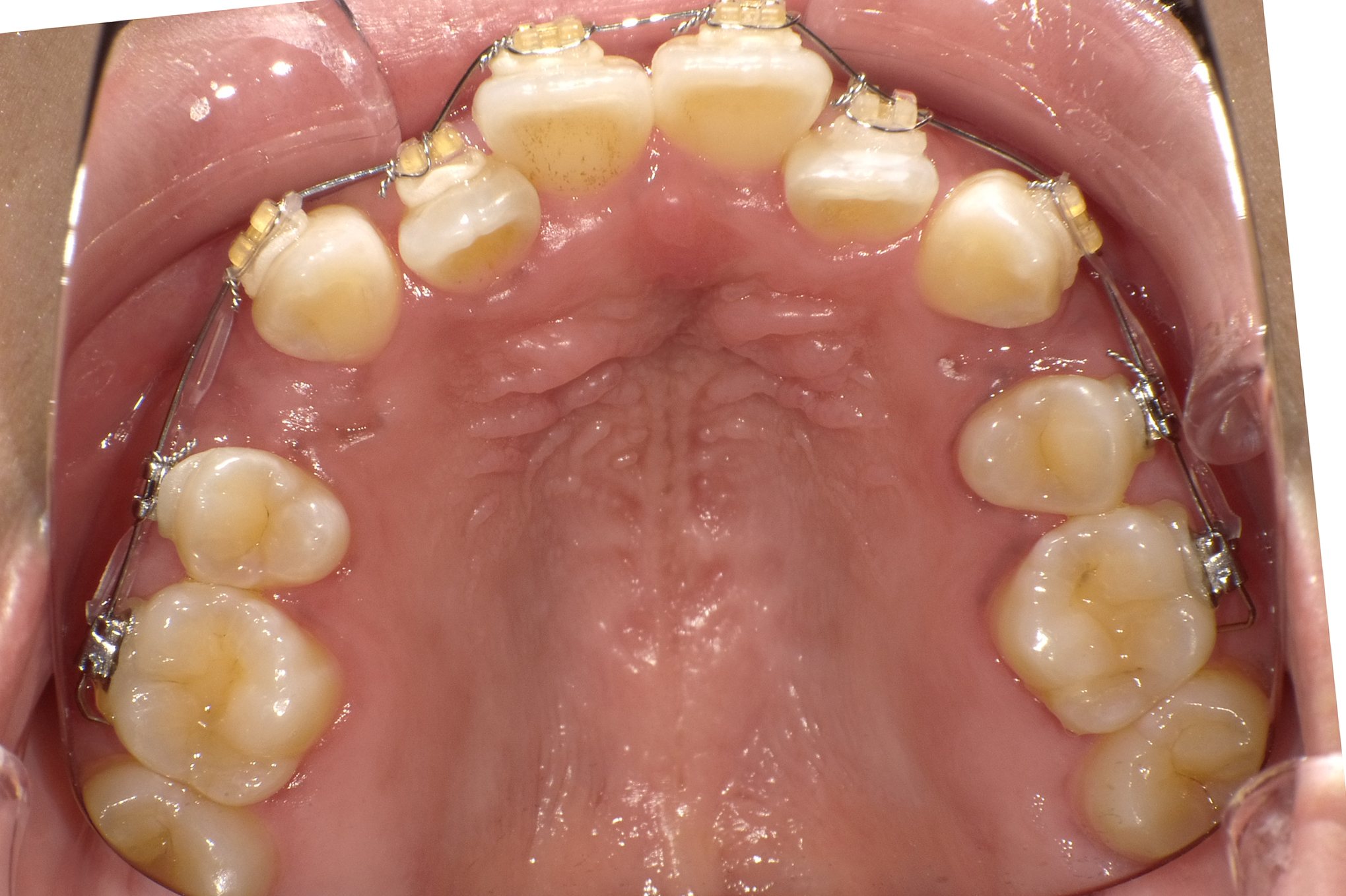 若干のズレ(前歯)があったり、親知らずがあるので、もう少し動かす事もできたかと思うのですが、ここで歯の動きを止めています。