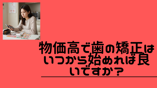 その他 物価高で歯の矯正はいつから始めれば良いですか? 2026年1月2日 こもりん先生 今回は、物価高が続くなかで、歯の矯正はいつから始めれば良いかをご説明させていただきます。 下の画像は生成AI(Google G …